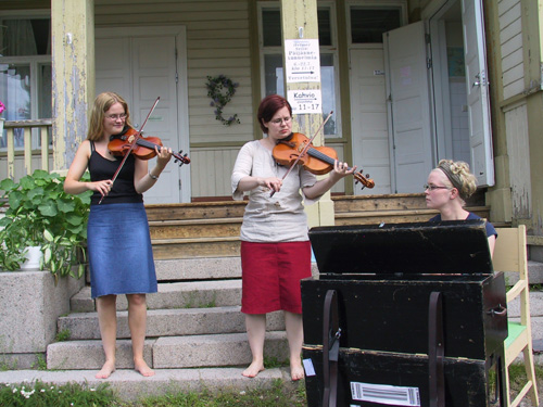 Korpilahti-päivän musiikillisesta annista vastasi kansanmusiikkiyhtye Leghorn. Näiden tyttöjen soitto soi niin viehkeästi ja ammattitaitoisesti, että varmasti kuulemme heistä vielä myöhemminkin.