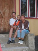 Talon remonttityöt ovat meneillään - vaikka olikin varsin hyväkuntoisena säilynyt, rakennus tarvitsee ajanmukaistamista sekä laittoa lapsiperheen vaatimuksia vastaamaan. Perheen tytär Emma on aloittanut koulutien Tammijärven koulussa, missä myös perheen äiti Marjo on töissä kouluavustajana. Hän on Muuramesta kotoisin, uusi työpaikka löytyi siis mukavan läheltä. Jan-Erikin työkenttää on metallintyöstökoneiden CNC-ohjaus. Aiemmin isännän harrastuksiin on kuulunut kalastus, johon on kyllä hyvät mahdollisuudet täälläkin. Yhteisen kodin remontoiminen on varmaan ykkösharrastus jonkin aikaa. Marjo puolestaan harrastaa musiikkia: hän soittaa kitaraa ja pianoa, mikä varmasti on eduksi kouluavustajan työssä. Erilaiset askartelutyöt tuovat nekin vaihtelua vapaa-aikaan. Putkilahti on edelleen maalaismainen elinpiiri. Traktorien pörrääminen eri työkoneet perässään kertoo maatalouden vuodenkierrosta ja keskikylällä on yhä laiduntavaa karjaa. Merivirran perhe on lähiympäristöstä löytänyt Ylätalon, missä käydään aina välillä katsomassa Erkin lehmiä ja vasikoita. Sen verran on jo eläintenpitoon kipinää saatu, että omaan talliin hankittiin muutamia lemmikkikaneja. Tervetuloa Putkilahteen Merivirroille - ja tarmoa talonlaittoon! Teksti ja kuva Timo Suominen [Julkaistu Putkilahden kylälehdessä 9/syyskuu 2006] |