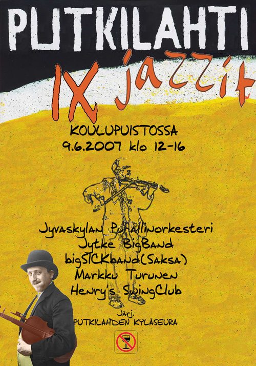 Vanhoista esiintyjistä ovat paikalla Jyväskylän Puhallinorkesteri Nikke Isomöttösen johdolla ja Jytke BigBand solisteineen johtajana Mika Heltelä. Viime kesänä katsomon puolella istunut Horst Könntopp tuo mukanaan big Sick bandin, joka on saksalaisen Sick AG-nimisen automaatioteknologian tehtaan (www.sick.com) henkilöstöstä muodostettu orkesteri. Sick AG:n ja Jyväskylän ammattiopiston opiskelijavaihdon 15-vuotisjuhla sattuu samalle viikonlopulle ja orkesteri on mukana juhlan tapahtumissa myös Jyväskylässä. Suurten orkestereiden jälkeen estradille saapuu Putkilahden oma poika Markku Turunen, jonka esiintymisestä Putkilahdessa on vierähtänyt useampi vuosi (kts. Putkilahden kyläkirja s. 291). Tällä kertaa Markun instrumentti on akustinen kitara. Menestyksekkään kansainvälisen uran luoneen Markku Turusen ohjelma Putkilahdessa tulee sisältämään omien kappaleiden lisäksi mm. Albenitzin, Brubeckin, Ellingtonin ja Tarregan sävellyksiä. Yllätyksiä tarkkakorvaisille! Neljäs esiintyjä on Henry´s Swing Club. Oman ilmoituksensa mukaan yhtye on uusiseelantilais-kanadalais-jyväskyläläinen. Siinä soittavat Tommy Barkman voc, gtr ja hca, Jaska Prepula bs, Make Lajunen drs ja special guest star Mika Lähteenmäki gtr. Tommya lukuunottamatta muut ovat tuttuja W&W-yhtyeestä. Tervetuloa IX jazzeille. [Julkaistu Putkilahden kylälehdessä 5/toukokuu 2007] |