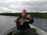 Ahventa kalastelemassaMökillä Putkilahdessa ahventa kalastelemassa oltiin Evin ja Tonin kanssa hyväksi havaitulla luodolla, jossa on noin 3.5 metriä vettä ja ympärillä tippuu yli 10 metriin.Onkiminen alkoi mukavasti parilla savupönttökokosella abburalla, sitten kohoa vietiin kiukkusemmin ja 4-metrinen teleskooppionki huuteli armoa. Minuutin kikkailun jälkeen aloin epäillä kalaa reilun kokoseksi lahnaksi, kun ei suostunut näytille tulemaan. Parin minuutin kohdalla nähtiin mikä siellä siiman päässä oikein nyhti vastaan, sehän on perkeles selkeä onkienkkaabbo.
