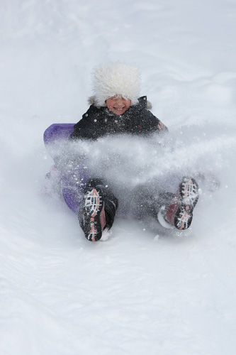 Lapset jaksoivat reippaasti kävellä hurjaa mäkeä ylös ja ylös, kerta toisensa jälkeen. Taaskin oli mäessä mukava “lumen pölläytyskohta”. Kaikki laskijat taisivat siinä saada luontoäidin hyiset lumipesut. Ihanan nauravaisia ilmeitä ja punaisia poskia koko mäki pullollaan!