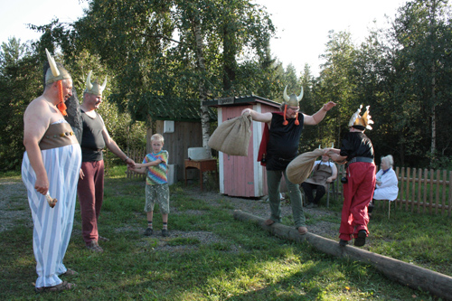 Villiä sikaa gallialaisittainMinulla oli ilo olla katsomassa Gallialaista meininkiä Simolan villisikatarhalla 27.8. Ilma suosi, oli aurinkoista ja lämmintä. Paikalla oli heti alusta lähtien mukavan kotoisa meininki. Heimopäällikkö kyläläisineen otti vieraat ystävällisesti vastaan. Kodasta, kokin padasta, nousi herkullisia tuoksuja, jotka saivat veden herahtamaan kielelle. Paistos oli todella maukasta ja voimajuoma antoi sopivasti energiaa. Ruokahetken kruunasi aromikas nokipannukahvi. Jos oli pienempi nälkä, niin tarjolla oli myös paistettua makkaraa, joka ainakin meidän pojalle maistui oikein hyvin.Aitoja gallialaisia asuja näkyi mukavasti paikan päällä. Nuorempaa väkeä kiinnosti erityisesti Obelix, joka kantoi suurta ja painavaa kiveänsä.