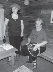 Annikin äiti Saara (ikkunassa) on opastanut torpalle Aune ja Putte Kasurisen.