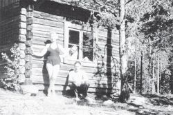 VIITOITTAMAA TIETÄ. Torpan seinää vasten otetusta ryhmäkuvasta puuttuvat Simo ja Ville, jotka lähtivät paluumatkalle ennen muita. Sensijaan Anni ja Maija jäivät suosiolla autoon ja varjoon muiden kontatessa metsässä. Housutorppa on 111 m Päijänteen pintaa korkeammalla oleva pikkuruinen talo, joka on 1947 yhteisvoimin rakennettu matkakohteeksi Oittilan Uusitalon (nyk. Villa Caven) vanhan aitan hirsistä.