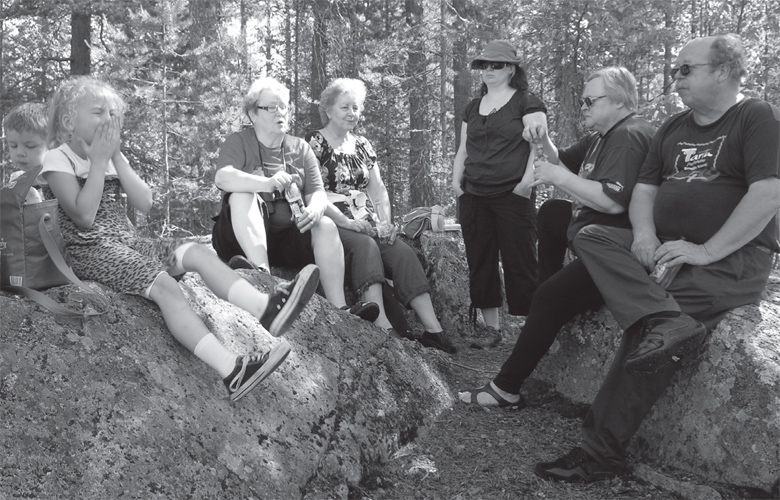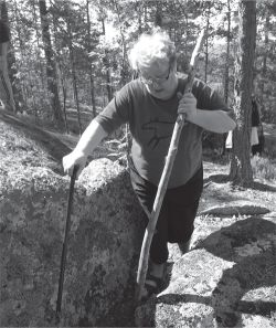 Lieko ollut huikopalan vai näennäisen helposti tapahtuneen perillepääsyn aikaansaaman euforian tulosta, kun istuuduttuaan Annikki parahti: ”Tiedän kyllä vielä korkeamman paikan!!” Tukiryhmä yritti tukeutua toisiinsa, keskittyä näkkileipiinsä, räplätä kameraa tai kiikarikoteloa ja näin saada Annikki unohtamaan juuri sanomansa. ”Se on silläkeinoin tässä lähellä, sillänsä. Pari kilometriä vaan Housuvuorelle. Autolla pääsee ihan viereen.” Vai Housuvuorelle? Anni alkoi parkua ja Anneli hapuili virkistystä. Jos olisi oltu työsuhteessa, olisi tässä vaiheessa aloitettu voimakas edunvalvonta, mutta mitä tekee bysthållare-porukka? Pakkaa eväänsä ja seuraa vaiti zombina loikkivaa keulakuvaansa alas Kettuvuoren rinnettä.