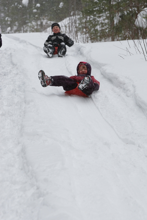 Hurjimmat uskaltautuivat kipuamaan mäen päälle ja tulivat sieltä kovalla vauhdilla alas. Loput tyytyivät mäen keskikohtaan ja siitä alas pääsemiseen.