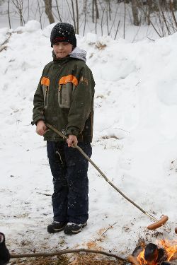 Väkeä oli monen ikäistä. Oli lapsia ja aikuisia. Useimmat aikuiset tyytyivät jäämään alas vaihtamaan kuulumisia, mutta muutama oli uskaltautunut mäkeen. Osa lämmitteli nuotion ääressä mahdollisten syömisten kanssa. Tunnelma oli mukava ja leppoisa. Ja miksipä ei olisi tuttujen kanssa.Punaisia poskia vilahteli siellä sun täällä, kun pienemmät lapset pujottelivat aikuisten välistä laskemaan mäkeä tai hakemaan syömistä. Ei voi muuta kuin todeta, että taas oli yksi unohtumaton kylän tapahtuma.